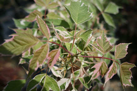 An outstanding Acer with vivid pink and white Spring leaves changing to white and green with flushing of soft pink and then in Autumn shades of Red and Pink.